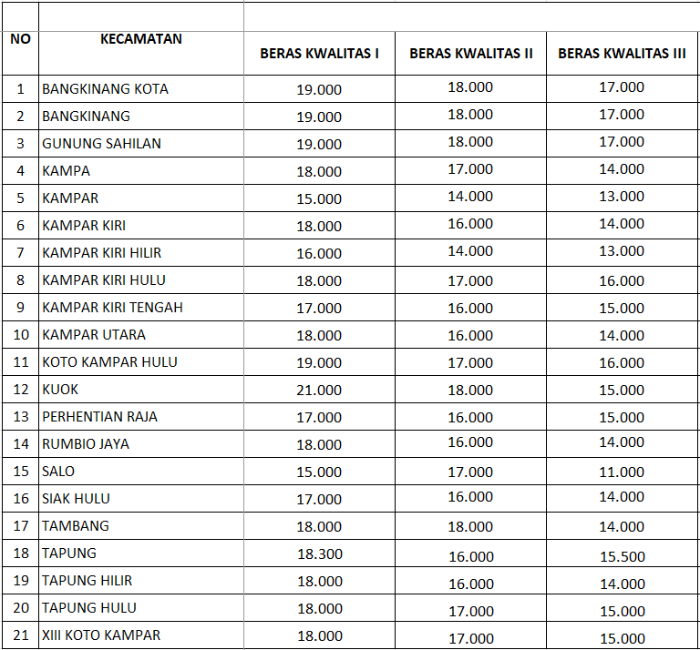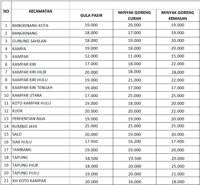 Rekapitulasi Harga Bahan Pokok Kabupaten Kampar Bulan September Tahun 2025 Admin 09 Oktober 2025 WIB 22 Kali REKAPITULASI HARGA BAHAN POKOK DI PASAR KECAMATAN KABUPATEN KAMPAR BULAN SEPTEMBER TAHUN 2025