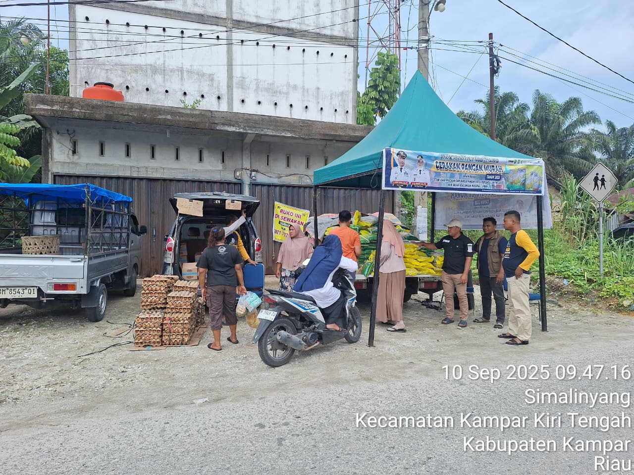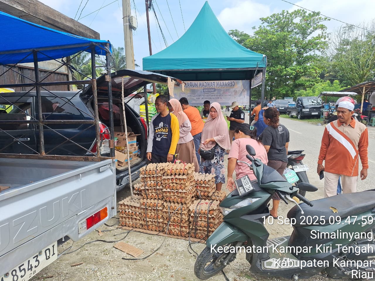 Kampar Kiri Tengah – Dalam upaya menjaga stabilitas pasokan dan harga pangan serta mengendalikan inflasi, Pemerintah Kabupaten Kampar melalui Dinas Ketahanan Pangan Kabupaten Kampar menggelar Gerakan Pangan Murah (GPM) pada Rabu, 10 September 2025, di Pasar Simalinyang, Desa Simalinyang, Kecamatan Kampar Kiri Tengah.