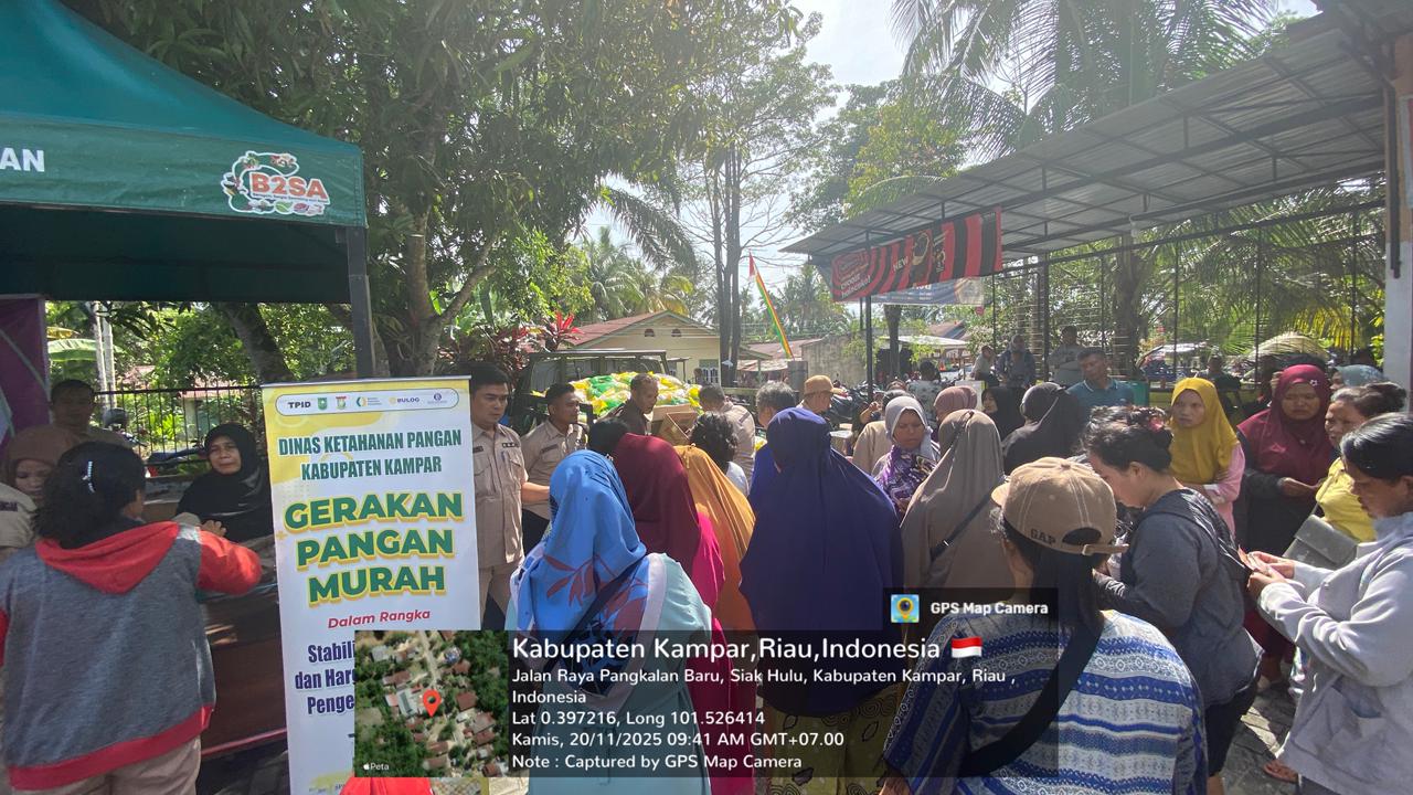 Siak Hulu – Pemerintah Kabupaten Kampar melalui Dinas Ketahanan Pangan bekerja sama dengan Badan Pangan Nasional menggelar Gerakan Pangan Murah (GPM) sebagai langkah konkret menjaga stabilisasi pasokan, harga pangan, dan pengendalian inflasi. Kegiatan ini dilaksanakan pada Kamis, 20 November 2025, berlokasi di Desa Baru, Kecamatan Siak Hulu.